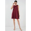 2444 Mini Keten Elbise - Bordo Bordo