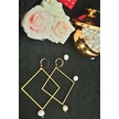 24k Altın Kaplama Gerçek Barok Tarz İnci Kare Tasarım Küpe Beyaz Gold