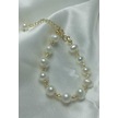 24k Altın Kaplama Gerçek İnci Dorika Detaylı Bileklik Beyaz Tek E