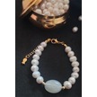 24k Altın Kaplama Gerçek İnci Sedefli Akrilik Detaylı Bileklik Be