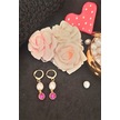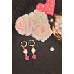24k Altın Kaplama Gerçek İnci Zirkon Taşlı Pembe Tasarım Küpe Pem Gold