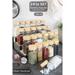 24'lü Bambu Kapaklı Cam Baharatlık Seti - Etiketli Tuzluk Biberlik Köşeli Baharat Takımı 120 Ml ŞEffaf
