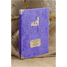 25 Adet - İsme Özel Kadife Kaplı Yasin Kitabı - Mevlüt Hediyesi - Çanta Boy - 128 Sayfa - Mor Mor
