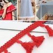 25 Metre 4.5 Cm Pamuk İplik Süpürge Dantel Kurdele Püskül Etnik Craft Dıy Perde Ev Dekoratif Giysi Dikiş Aksesuarları Kırmızı
