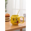250ml Gülümseme Seramik Kupası Erkekler Ve Kadınlar İfade Karikatür Fincan Kahve Süt Çay İçme Kupası Noel Çocuk Hediye Kupası Kupalar Sarı Altın - Beyaz