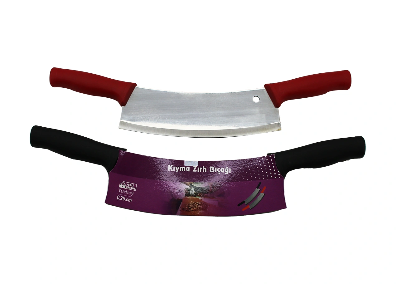 25lik Çift Saplı Kıyma Zırh Bıçak Satır Plastik Saplı Ahşap - Kırmızı