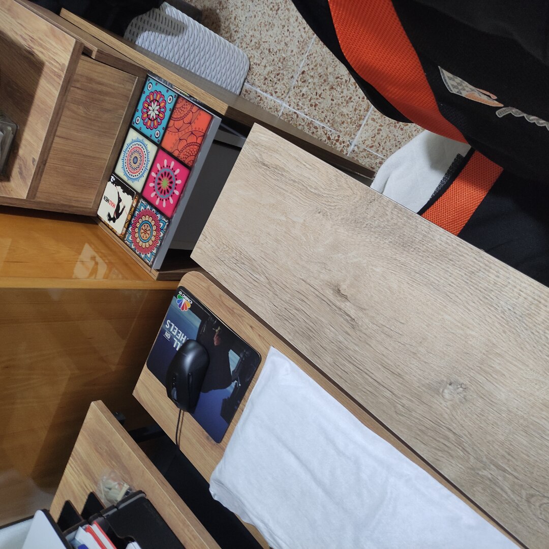 Yakın zamanda yeni PC masası almıştım ama klavye mouse kullanacağım alan kısa geldi bana. Yaklaşmak gerektiğinde ayağım denge demirine geliyor ve rahat edemiyordum. Yurtdışından iki katlanır bracket aldım bu rafı monte ederek masa önünü uzatacağım. Renk beklediğimden biraz açık ama daha uygunu bulamadım. Raf sağlam geldi ama bir köşesinde hafif bir ezilme var. Neyse ki altta kalacak olan kısma denk geleceği için sorun olmayacak benim için. Genel olarak memnunum.