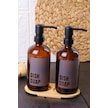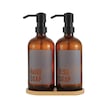 2'li Amber Cam Sıvı Sabunluk Seti Standlı Gri Etiketli