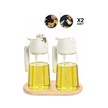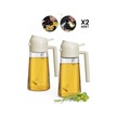 2'li Bambu Stantlı Çift Fonksiyonlu Sprey Dökme Cam Yağdanlık 450ml Yağlık Sıvıyağ Şişesi Airfryer Beyaz