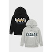 2'li Brooklyn-escape Baskılı Erkek Çocuk Kanguru Cepli Kapüşonlu Gri-siyah Sweatshirt Gri - Siyah1