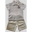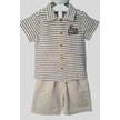 2'li Erkek Çocuk Kahve Çizgili Desenli Gömlek Bej Sortlu Keten Takım-1361 Kahverengi