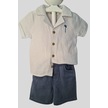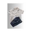 2'li Erkek Çocuk Krem Gömlek Mavi Sortlu Takım-1359 Krem