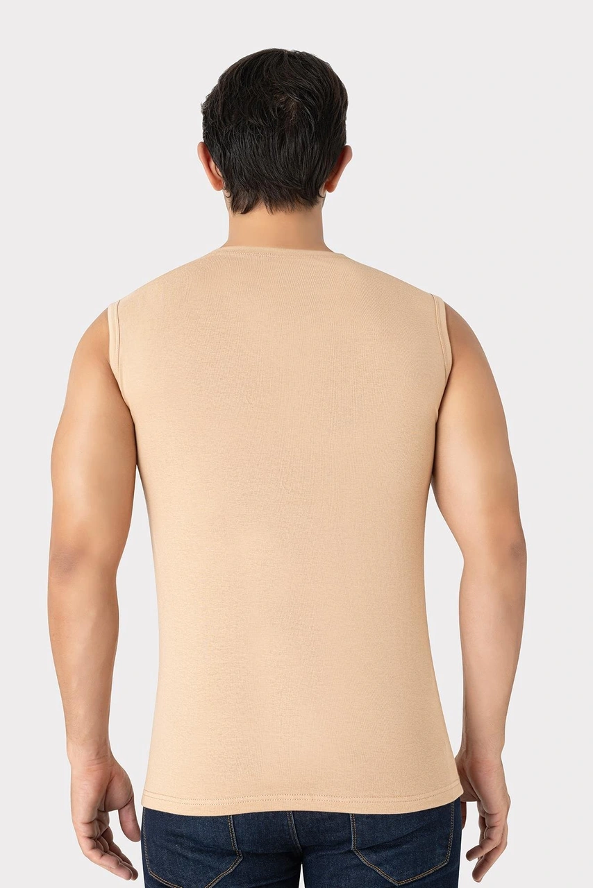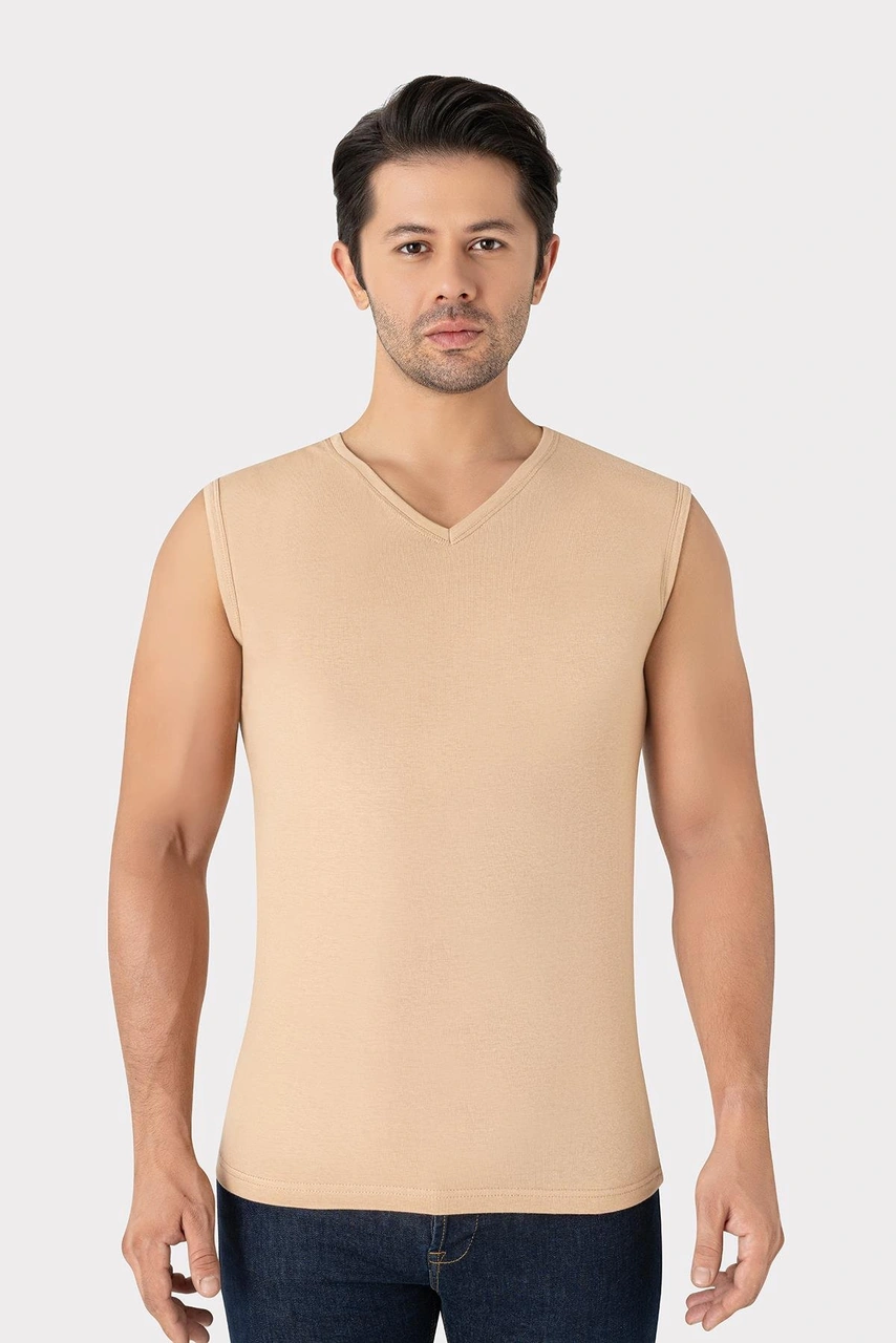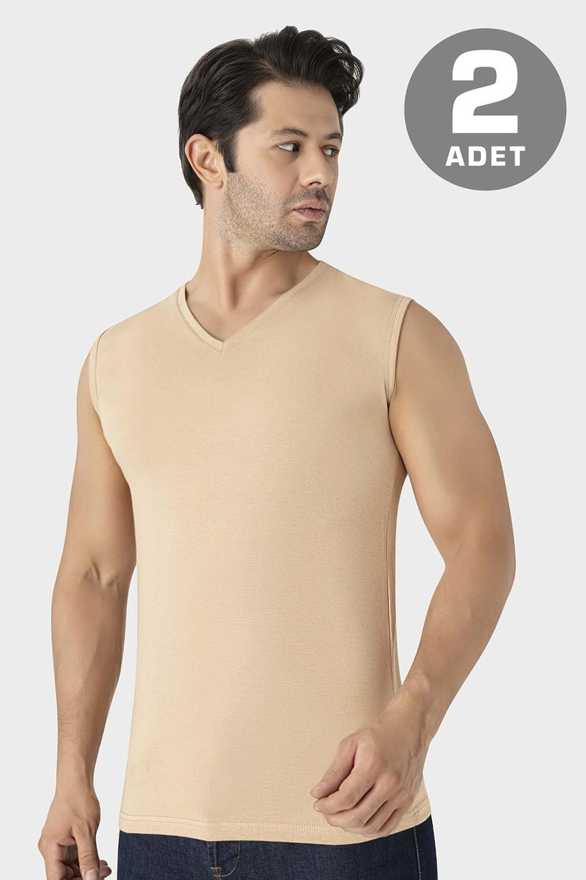 2'li Görünmez Atlet Erkek Ten Rengi V Yaka Kolsuz Tişört Pamuklu Likralı Esnek Yumuşak Kumaş Ten
