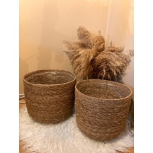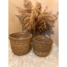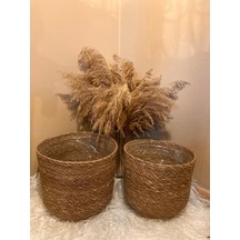 Porsima 2065-1 Kahve Dekoratif Çok Amaçlı Saksılık Hasır Modelli Saksı Çiçeklik