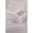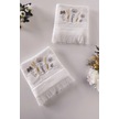 2'li Nakışlı Jakarlı Kadife El Yüz Havlusu - %100 Pamuk - Beyaz Beyaz Beyaz