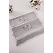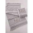 2'li Nakışlı Jakarlı Kadife El Yüz Havlusu - %100 Pamuk - Gri Grı Gri