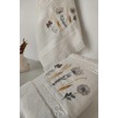 2'li Nakışlı Jakarlı Kadife El Yüz Havlusu Çiçek İşlemeli- %100 Pamuk - Krem Krem Krem