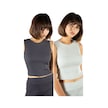 2'li Paket Antrasit Yeşil Fitted/vücuda Oturan Crop Halter Yaka Fitilli Esnek Örme Bluz Atlet Antrasit-yeşil