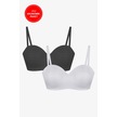 2'li Paket - Kadın Dolgusuz Transparan Çizgili Toparlayıcı Straplez Sütyen Siyah - Ekru