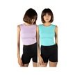 2'li Paket Lila Turkuaz Fitted/vücuda Oturan Crop Halter Yaka Fitilli Esnek Örme Bluz Atlet Lila-turkuaz