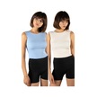 2'li Paket Mavi Krem Fitted/vücuda Oturan Crop Halter Yaka Fitilli Esnek Örme Bluz Atlet Mavi Krem