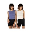 2'li Paket Mor Krem Fitted/vücuda Oturan Crop Halter Yaka Fitilli Esnek Örme Bluz Atlet Mor-krem