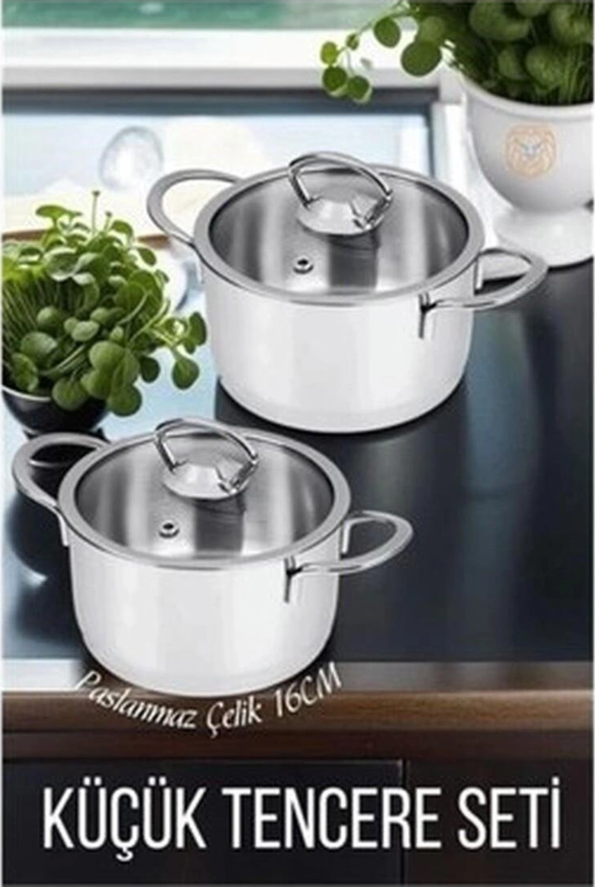 2'li Paslanmaz Çelik Tencere Seti, 16 Cm, Beyaz, Dayanıklı Ve Şık Tasarım Bakır - Siyah