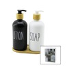 2li Set Cam Sıvı Sabunluk - Losyonluk Boyalı Cam Siyah-beyaz Ahşap Bambu Altlık Siyah