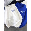 2'li Still Freedom Kalın Kışlık Sweatshirt - Beyaz Sax Mavi Baskılı Oversize Kapüşonlu Beyaz Sax Mavi