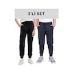 2'lü Düz Baskısız Jogger Çift Cepli Çocuk Eşofman Altı Siyah - Füme