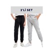 2'lü Düz Baskısız Jogger Çift Cepli Çocuk Eşofman Altı Siyah - Gri