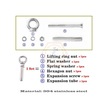 2set M12 190mm 304 Paslanmaz Çelik Kaldırma Halkası Genişletme Vidaları M18 x 180