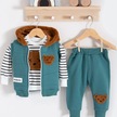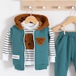 3-18 Ay Erkek Bebek Takımı Peluş Ayıcık Kapişon 3'lü Yeşil