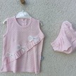 3-9 Ay Bebek Brode Fiyonklu Külotlu Yazlık Takımı Pembe Pembe