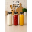 3 Adet 250 Ml Beslenme Şeffaf Meyve Suyu, Meşrubat, Limonata Şişesi Metal Kapaklı 250 Cc Şişe Siyah