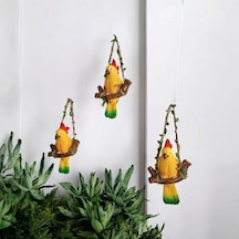 3 Adet Dekoratif Sallanan Duvar Ve Bahçe Süsü Papağan Yeşil