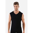 3 Adet Siyah Kolsuz Erkek Atlet V Yaka Sıfır Kol Tişört %100 Pamuklu Siyah