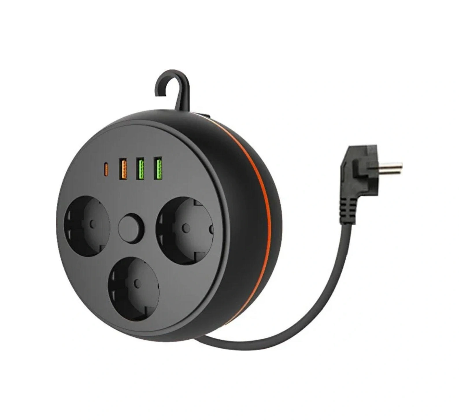 3 Adet Soket,3 Adet Usb Ve 1 Adet Type-c Girişli Termal Akım Korumalı Makaralı Priz 3395 0.7 M
