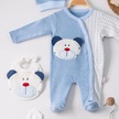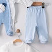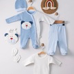 3 Ay Ayıcık Nakış Tulumlu Erkek Bebek 5'li Set Mavi Mavi