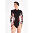 3 Farklı Şekilde Giyilebilir Likralı Etekli Tesettür Mayo Dora 2111 Siyah Siyah