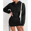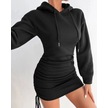 3 İplik Şardonlu Kapşonlu Elbise Siyah Siyah