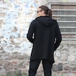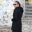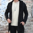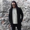 3 İplik Şardonlu Polar İçi Peluş Detaylı Kapşonlu Panço Ceket Siyah