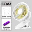 3 Kademe Şarjlı Mandallı 360 Taşınabilir Fan Vantilatör Jh-006 Beyaz