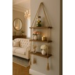 3 Katlı Dekoratif Ahşap Halatlı Duvar Rafı Kitaplık & Çiçeklik Uçan Raf 35cmx13cmx90cm Kahverengi