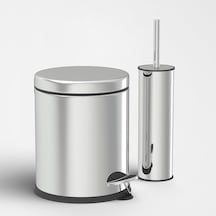 3 Litre Çöp Kovası Ve Tuvalet Fırçası Krom İkili Set