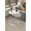 3' Lü Zigon Sehpa Gümüş Ayak Beyaz Mermer Desen 18 Mm Mdf Gümüş - Beyaz Mermer