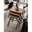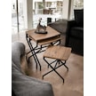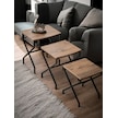 3 Lü Zigon Sehpa Metal Ayaklı Çam Ahşap Kare Misafir Sehpası