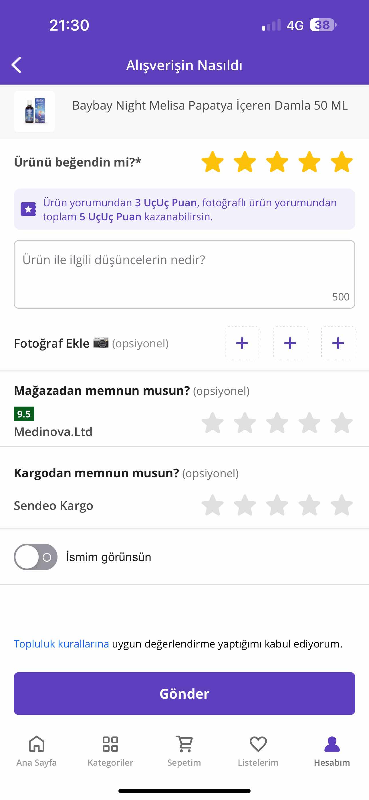 • Alışverişini 800 TL’ye tamamla %10 sepette indirim kazan!