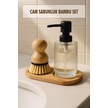 3 Parça Bambu Altlıklı Sabunluk Ve Temizlik Fırça Seti Bambu