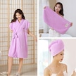 3 Parçalı Banyo Havlusu Seti Kuru Saç Kap Havlu Ananas Bornoz Seyahat Banyo Havlusu Kalınlaşmış Mercan Kadife Kadın Bornoz Mor